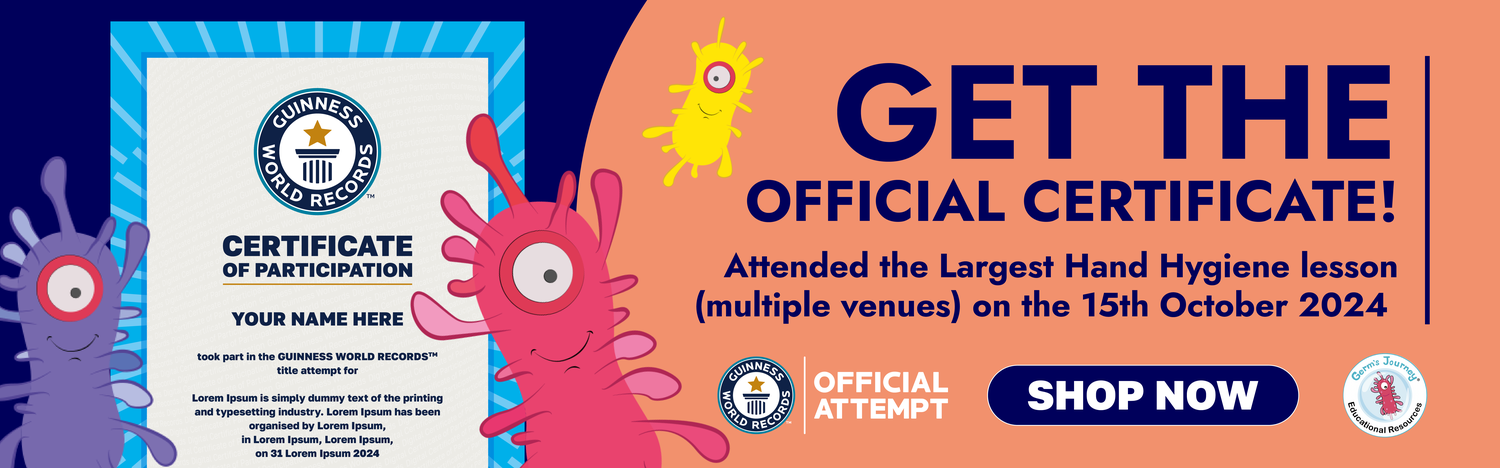 Did your child take part in the record attempt for the largest online handwashing lesson on Global Handwashing Day, organised by Germ's Journey? This historic event united schools across the UK on October 15th to teach youngsters the importance of handwashing as one of the most effective ways to prevent the spread of infections and diseases. Now, you can celebrate their participation with an official Guinness World Records Certificate of Participation (https://gwrstore.com/pages/germs-journey-handwashing-lesson )—a keepsake that symbolises your family’s commitment to health and hygiene.